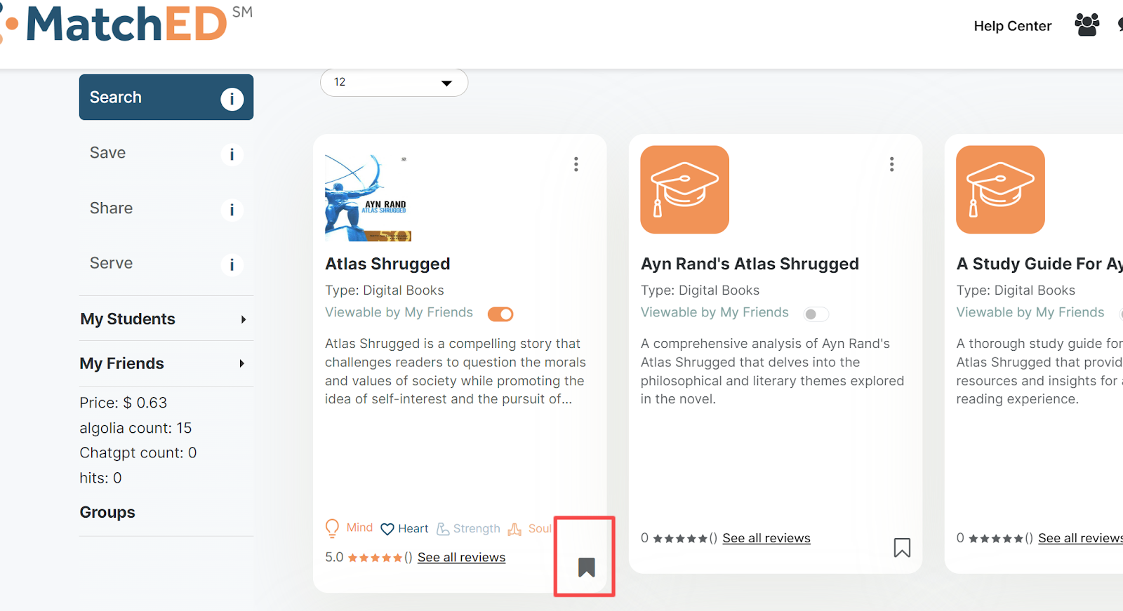 To know if a resource that you have searched for has already been saved to your profile, look towards the bottom right corner for the bookmark symbol. If that symbol has been bookmarked and filled in like that shown in the picture below (in the red rectangle), then that means that you have already saved the resource to your profile.